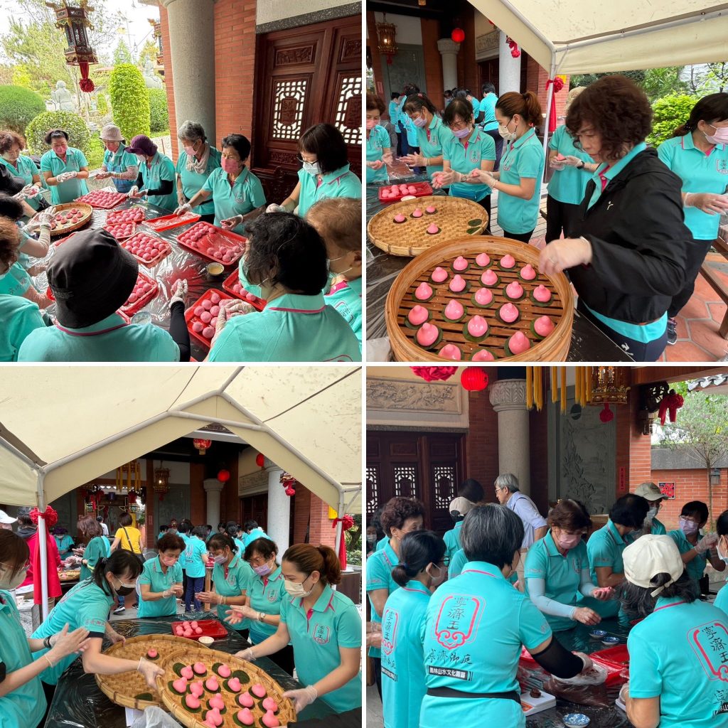 今年義工們團結一心,輪班作業,3天總共製作了6000顆「福圓」,並以五儀:「福、祿、壽、喜、財」五個爐啟爐來蒸「福圓」賜福給信徒和香客。